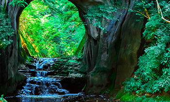 亀山が誇る紅葉スポットの一つで、秋になると滝と紅葉の見事なコラボレーションに多くの観光客が魅了されます。(要予約)